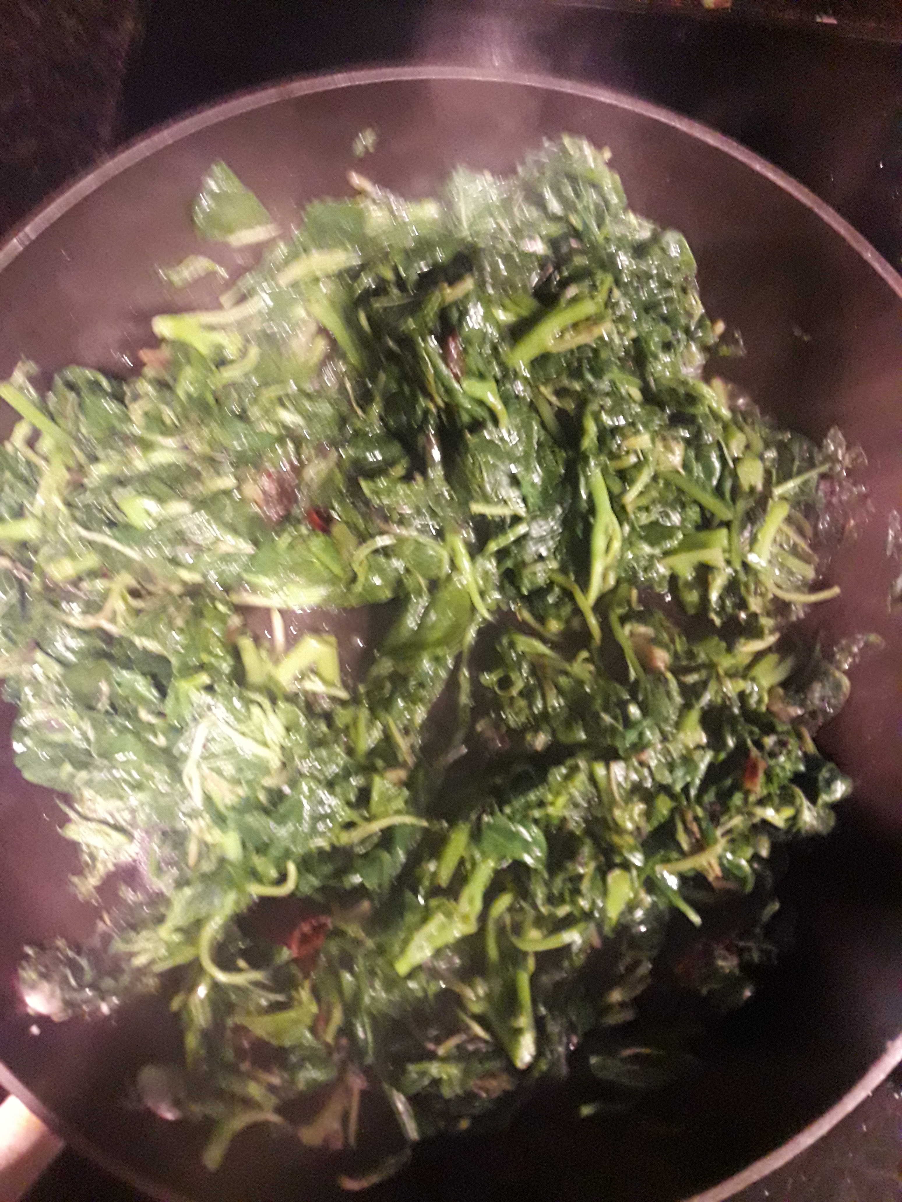 Keerai Poduthuval ( Stir-fried Greens garnished with coconut)