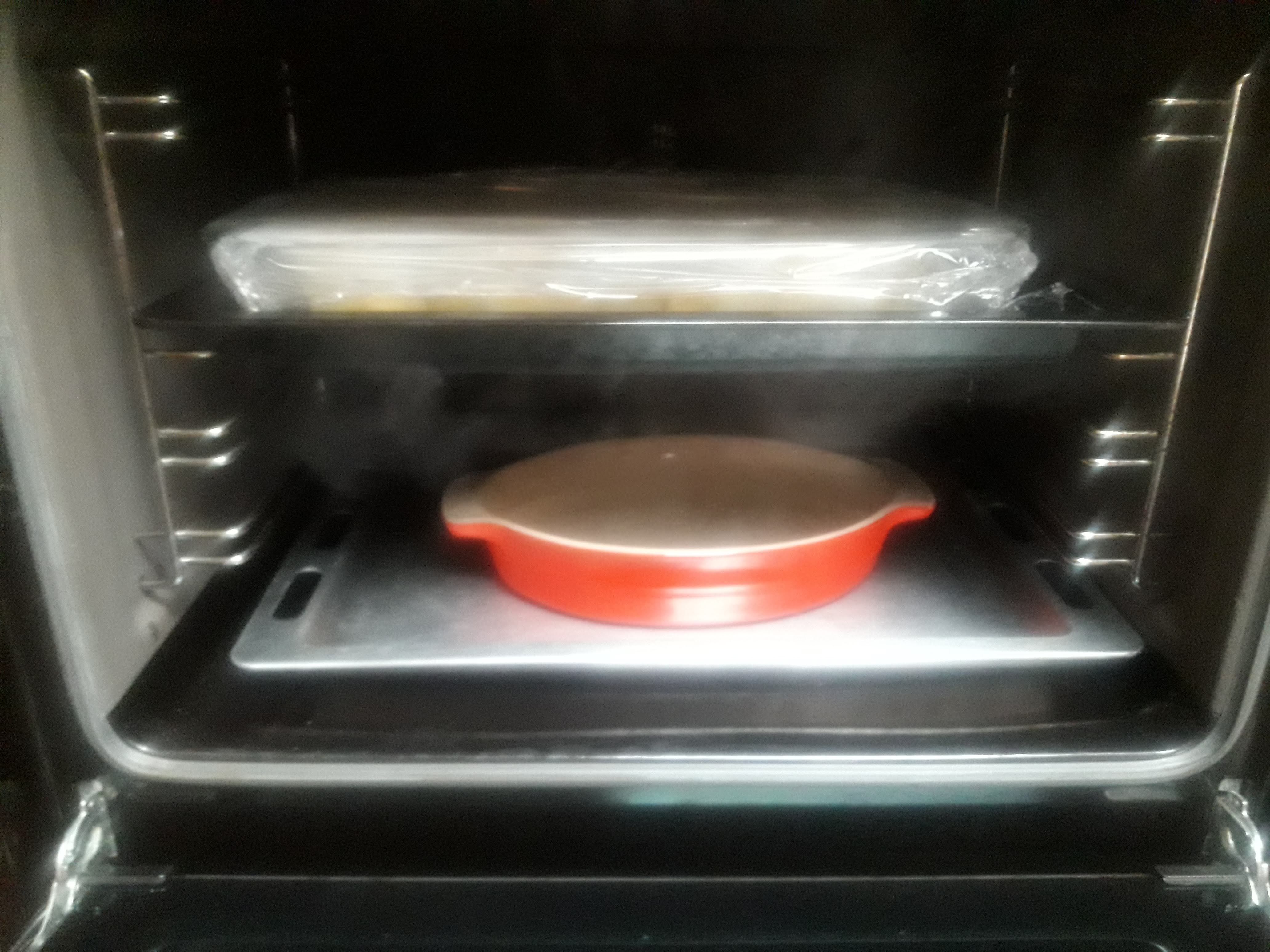 - Remove the rolls from the refrigerator and place in an oven that is turned off. Fill a shallow pan 2/3-full of boiling water and set on the rack below the rolls. Close the oven door and let the rolls rise until they look slightly puffy; approximately 30 minutes. Remove the rolls and the shallow pan of water from the oven.