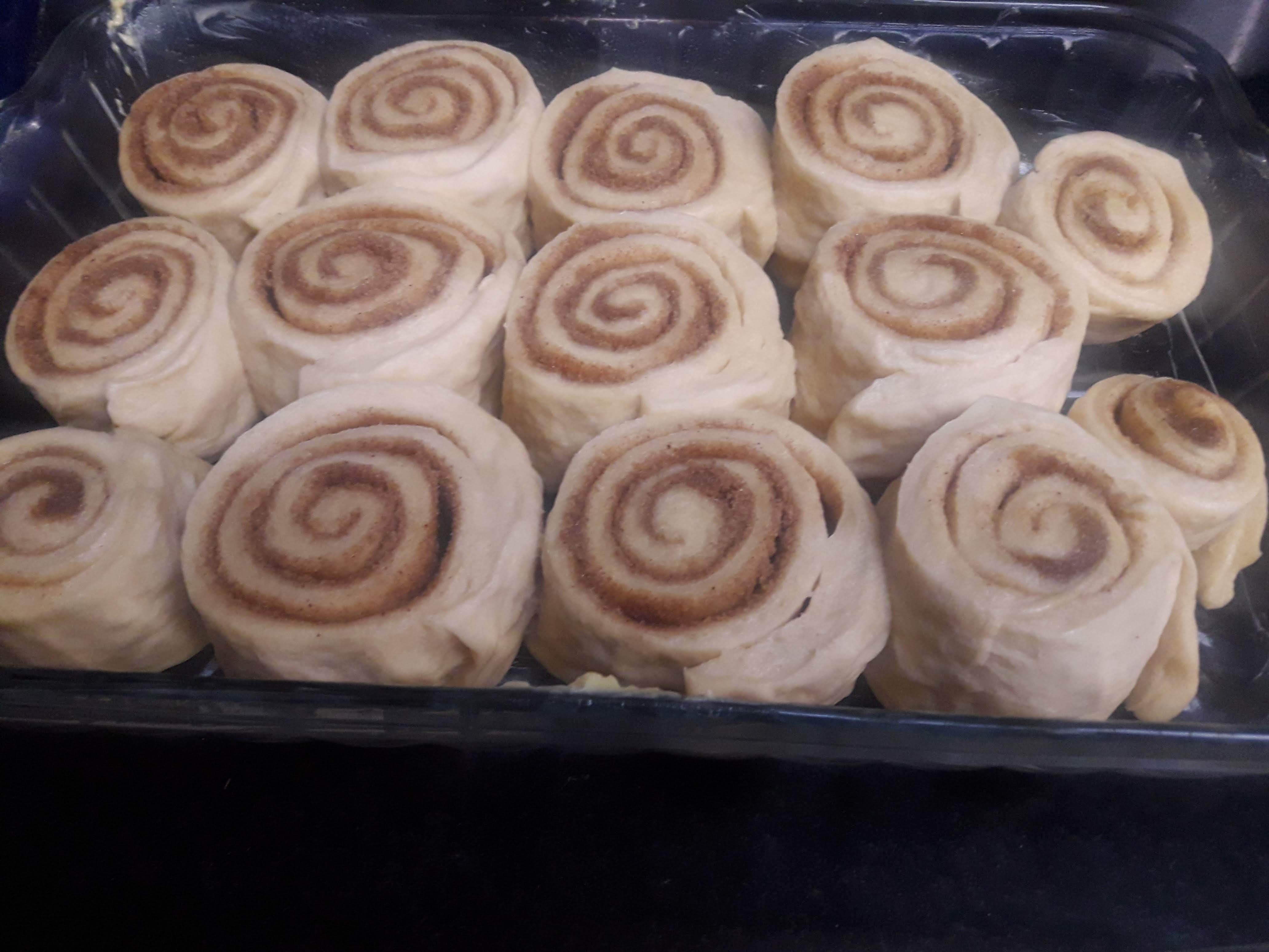 The recipe is from Alton Brown, one of my favourite chefs. The recipe can be found at https://www.foodnetwork.com/recipes/alton-brown/overnight-cinnamon-rolls-recipe-2014250 Here are the directions (copied from the food network website) with my pictures.