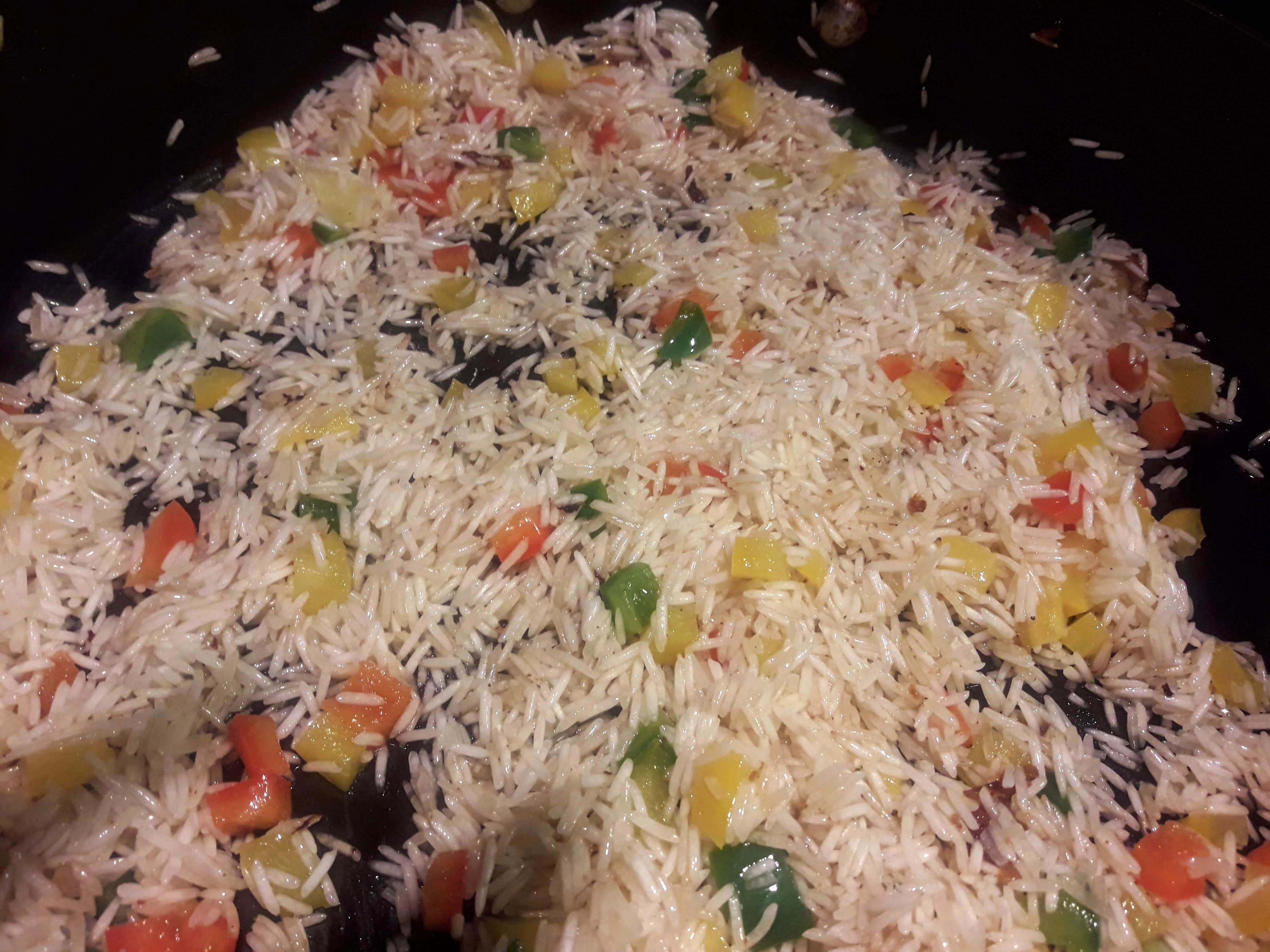 - Add rice and saute till the rice is translucent.