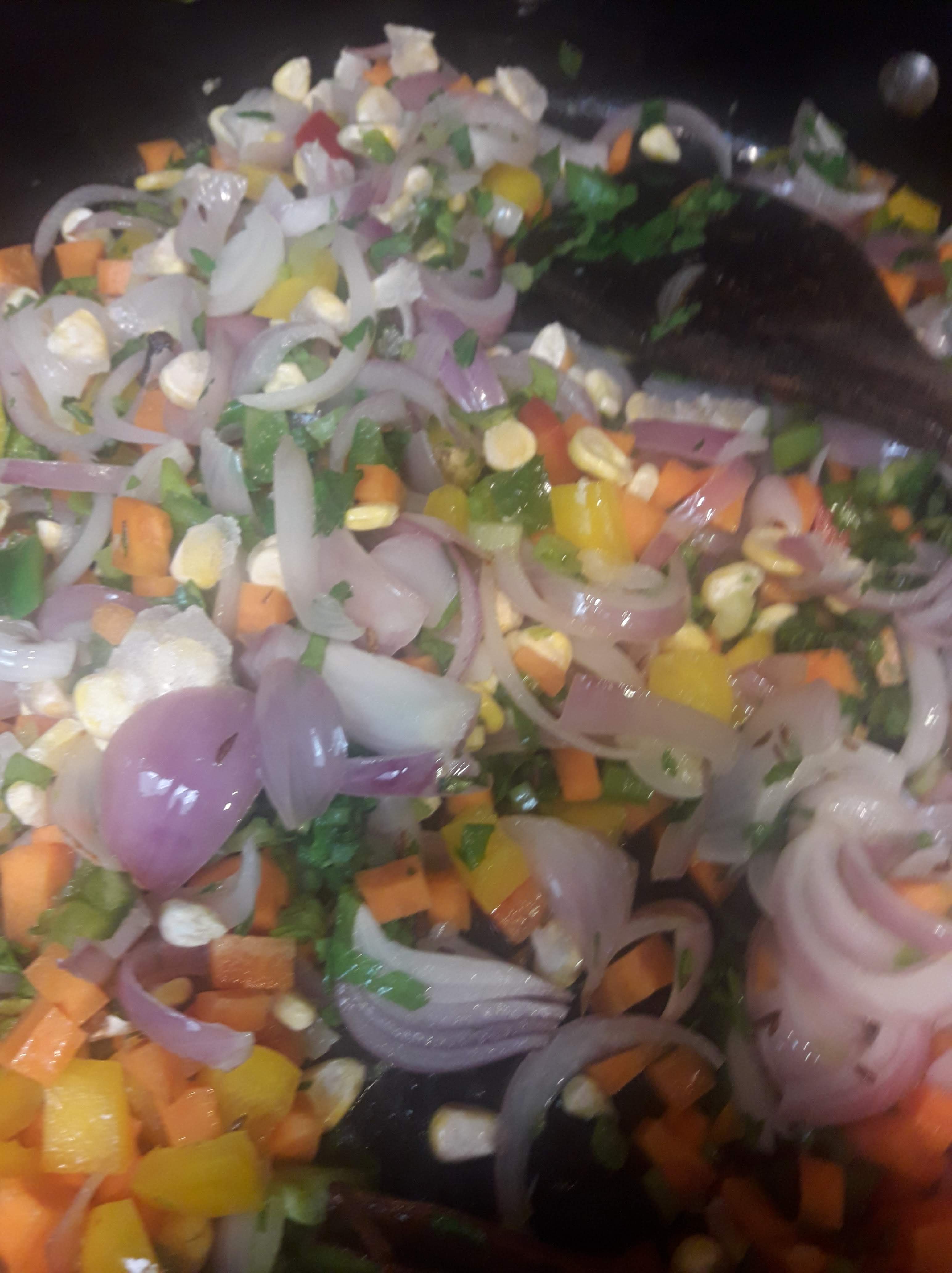 - Let it simmer for about 3 minutes. (If you keep it for longer the rice will get overcooked while baking)