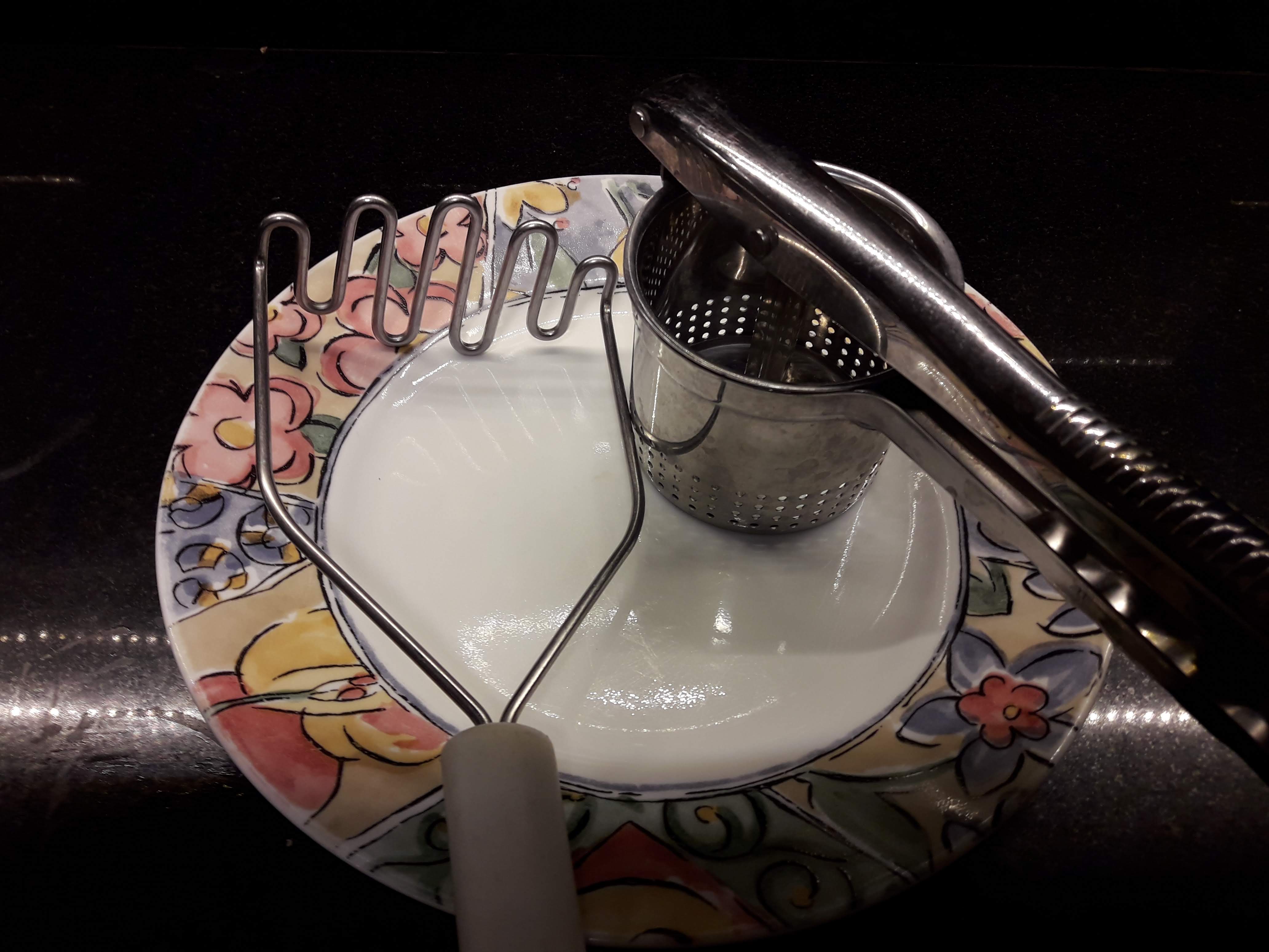 Potato masher: I prefer the older, simpler one. The potato ricer, I use to break nuts into pieces rather than a ricer.