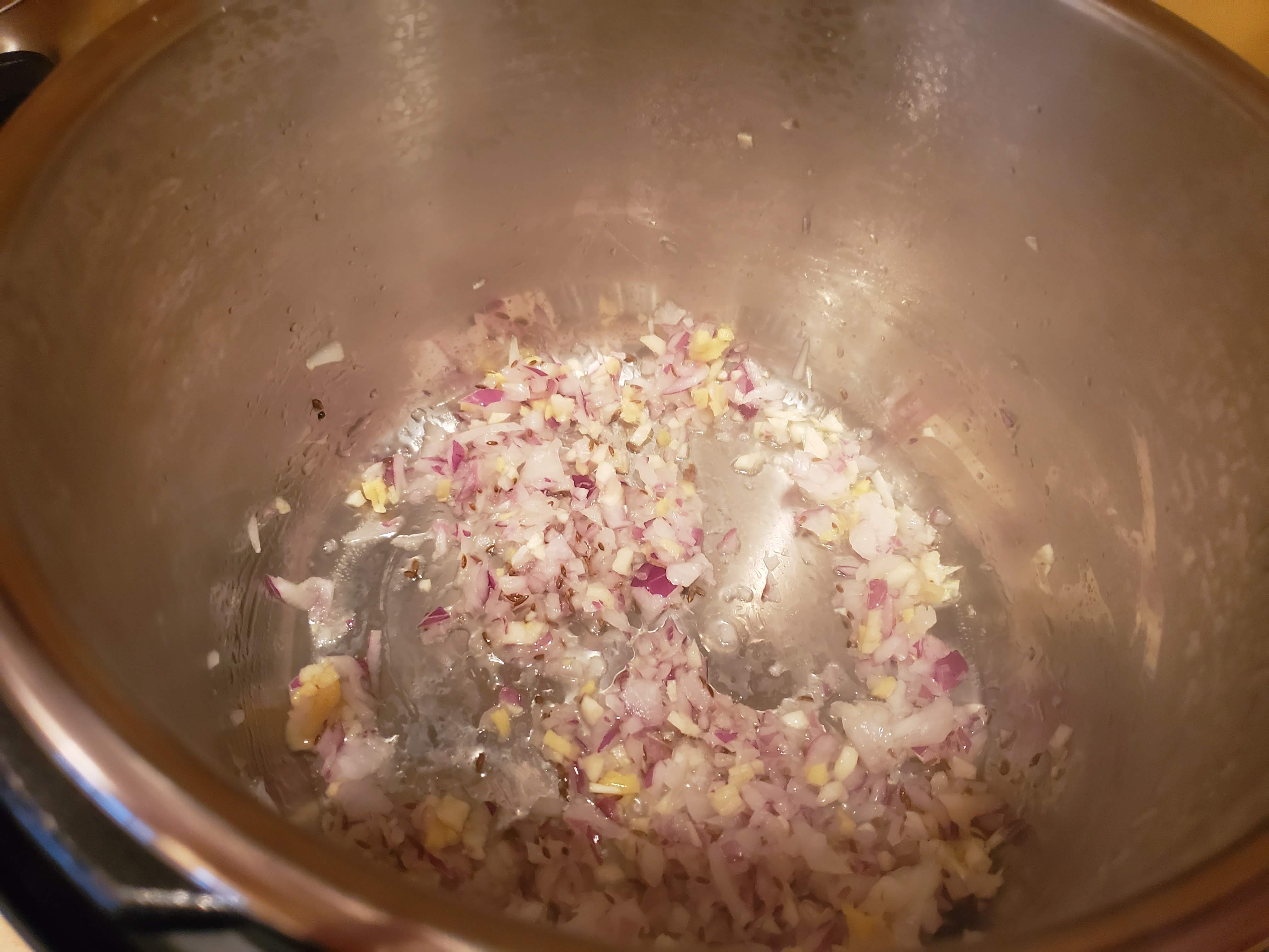 I recently bought an instant pot (which I may have mentioned in an earlier post). I was introduced to it last summer when a few of my friends owned one. I had decided then that I need one (not want one but need one!). The first dish I made with that was a biryani and my son who is very picky about biryani and has previously told me that mine are not as good as the restaurant ones, said that it was ‘surprisingly’(!) very good. I then tried making khichdi with it. In both instances I sautéed the vegetables in a pan before adding it to pressure cook.