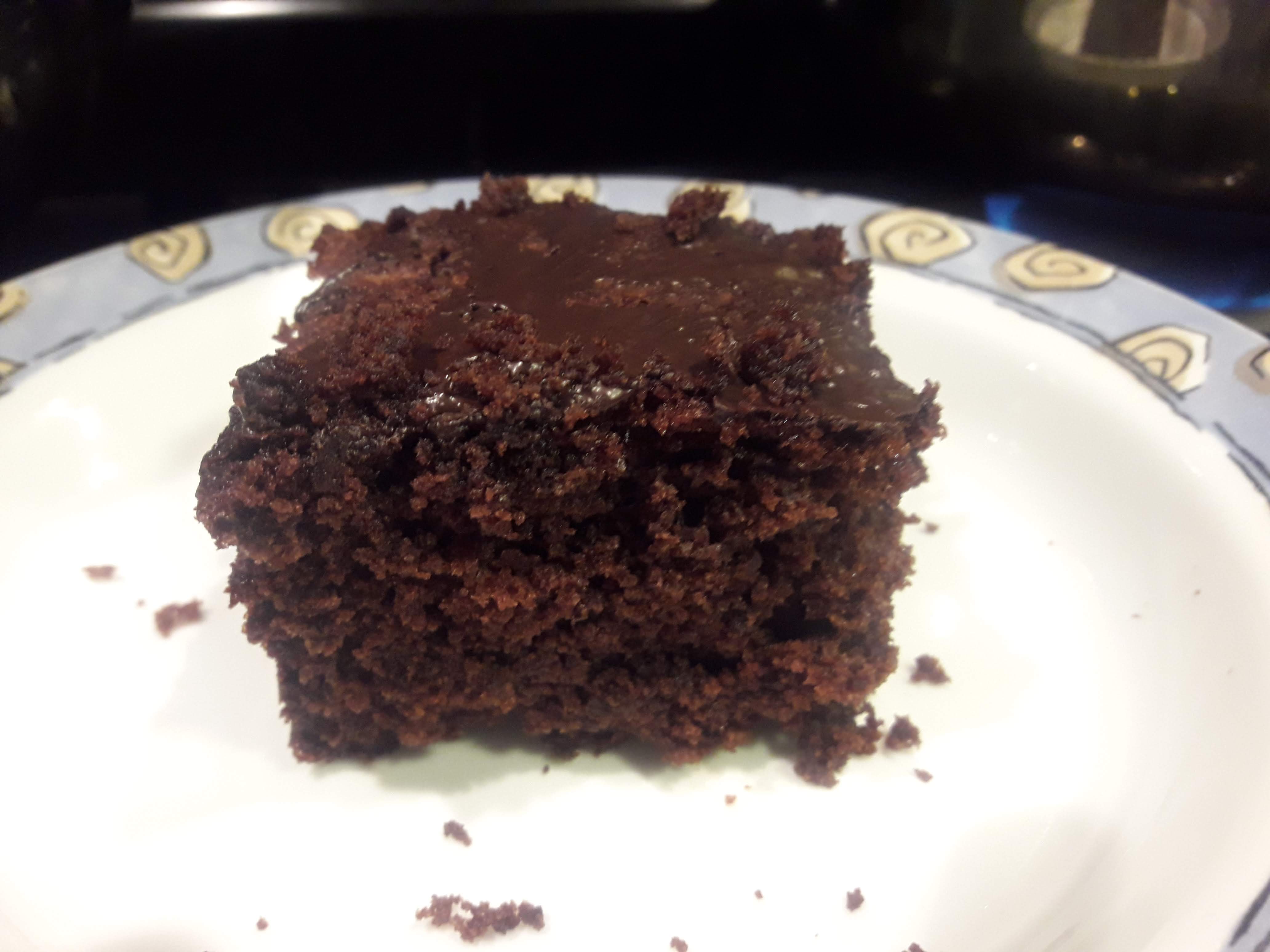 This is one of the best chocolate cakes I have eaten. I have made this cake many many times, sometimes just sprinkled with powdered suagr and sometimes with a glaze. The recipe says that only dutch-process cake works. I have tried with both and they both work. This recipe is from a magazine Cooking Pleasures, January 2002 issue. My picture does not do justice to the cake. I cut a piece after people started tucking into it.