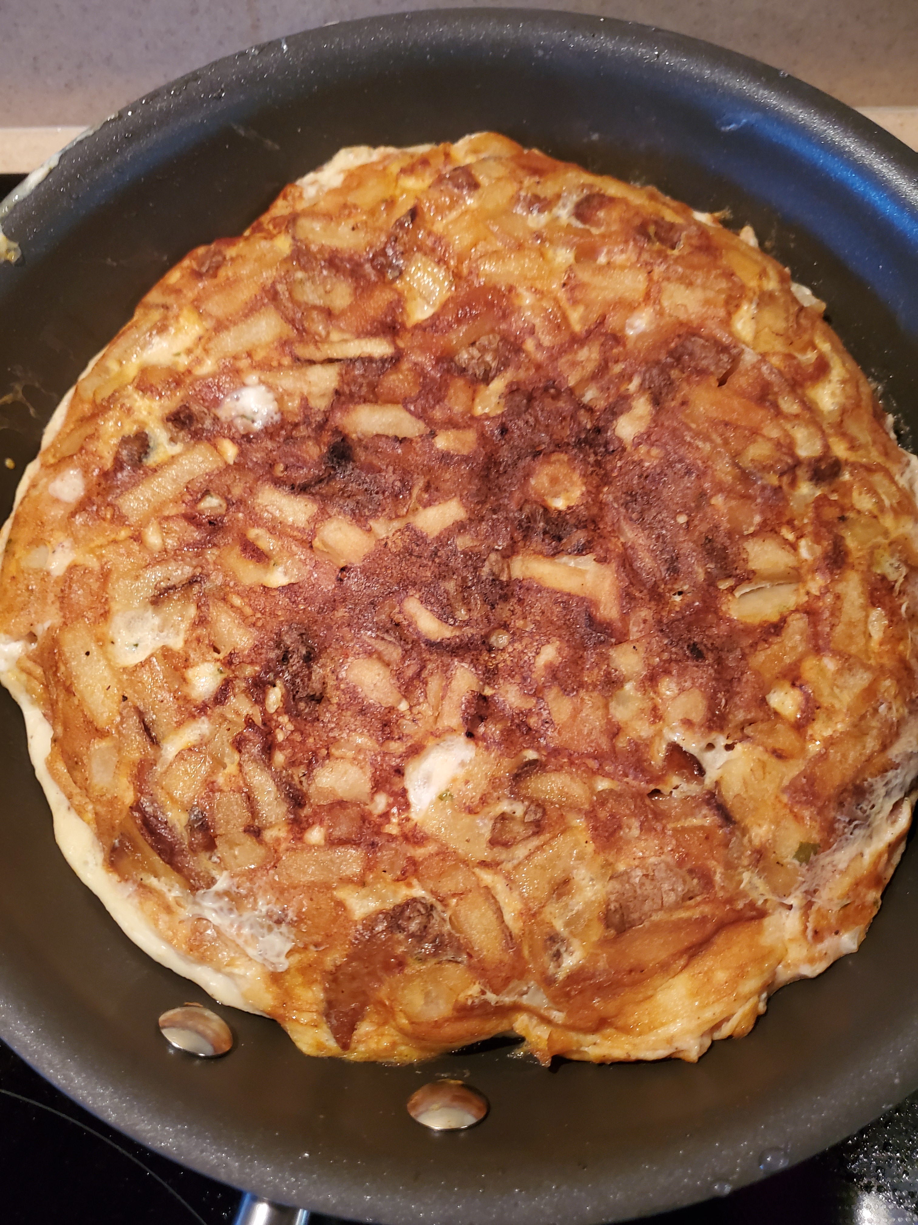 Slowly flip. I usually cover the skillet with a plate and then flip. Then slide the frittata back