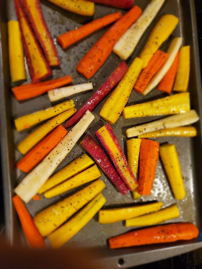 One day, while I was grocery shopping, I saw these ‘rainbow’ carrots. They were carrots of different color. It piqued my interest and I bought a bag. The lighter colored one was not as sweet and had a mild taste of radish. You could make this with regular carrots too. It is really easy to make.