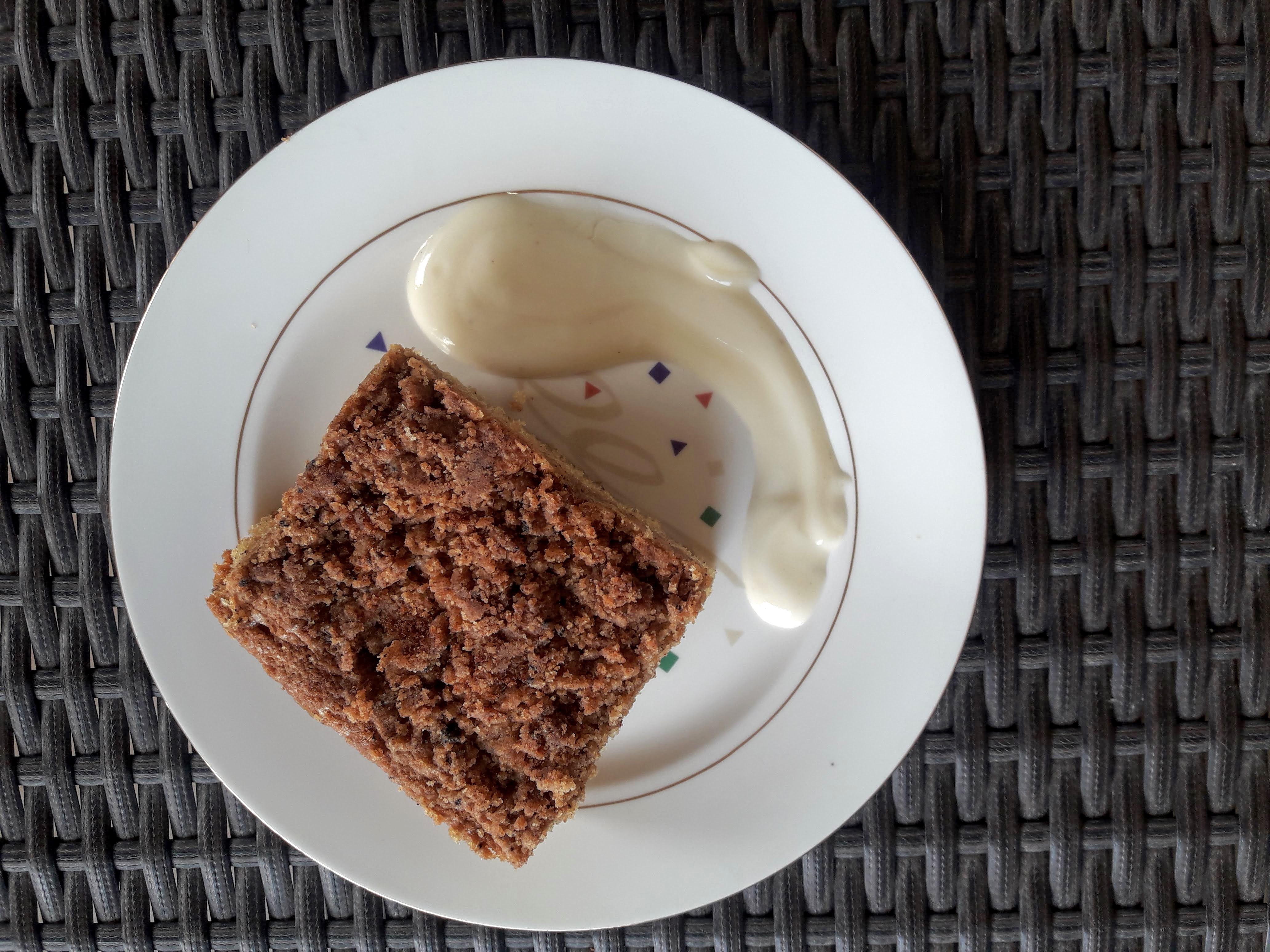 I have my usual quick dessert recipes which I make often. But at times, I get bored of making the same. This is a new recipe which had some raving reviews from my friends. This recipe has been adapted from Trisha Yearwood’s recipe on Food Network. Though there is quite a large amount of coffee added, the distinct taste is of cinnamon with an after taste of coffee. You could reduce the cinnamon by half if you do not like the taste of cinnamon. This cake was really soft almost like a sponge cake. I made a yogurt honey sauce to go with it, but it was good without the sauce too.