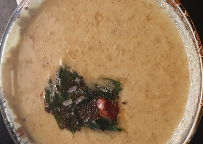 - In a pan, take a tsp of coconut oil, add mustard, red chillies and curry leaves