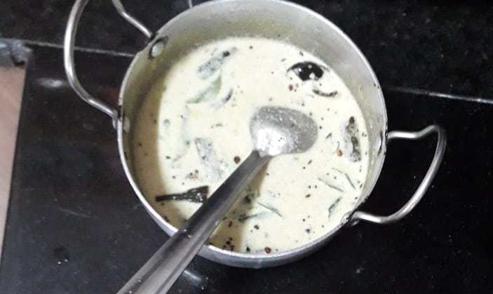 - Grind 1 cup sliced or grated coconut, 2-3 green chillies or jalapeno chillies, 1 tsp rice powder, 1 tsp cumin seeds and 2 cups curd/yogurt. Do not add water; grind till coconut and chillies are finely ground. Keep paste aside