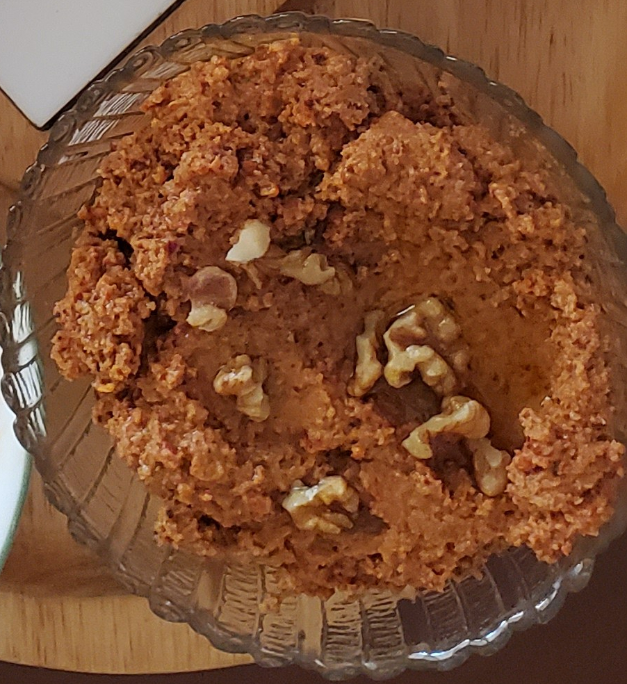 - Transfer to a bowl. Make a well and add 1 tbsp olive oil, pepper flakes and a few walnuts and serve with bread or pita chips