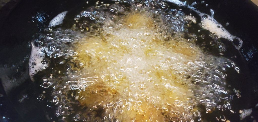 - Make balls and fry in batches of 5-6 till golden brown. Some of them I dipped in sesame seeds for a different texture and taste