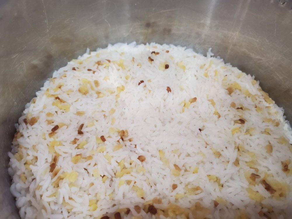 - Add rice, moong dal, water and salt to a pressure cooker or instant pot and pressure cook. Instant pot (5 minutes)